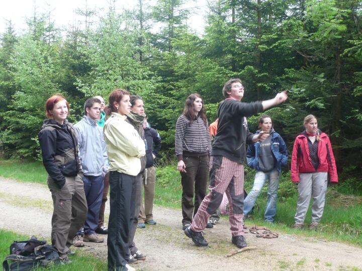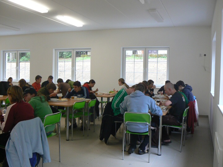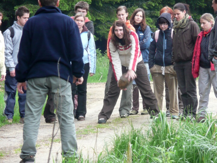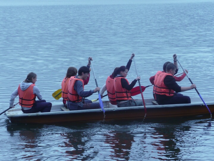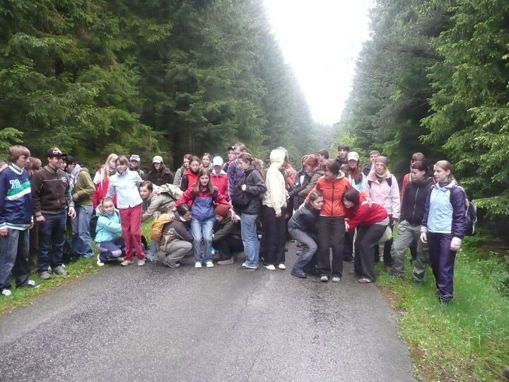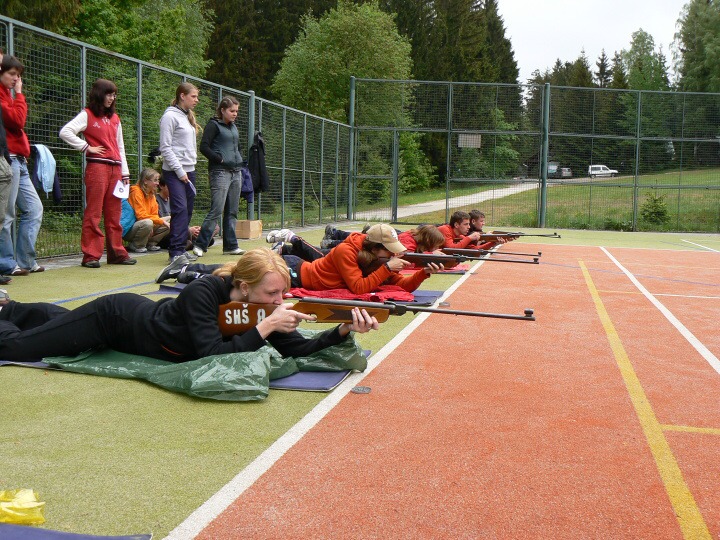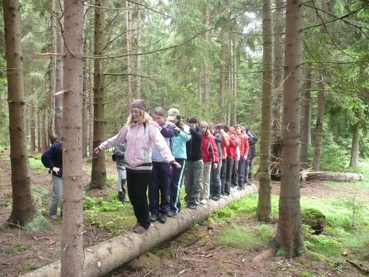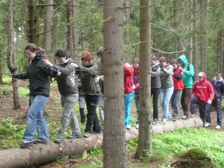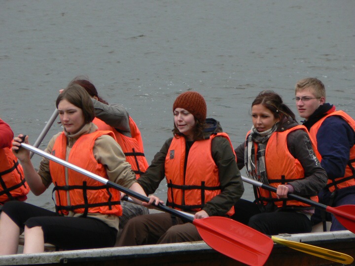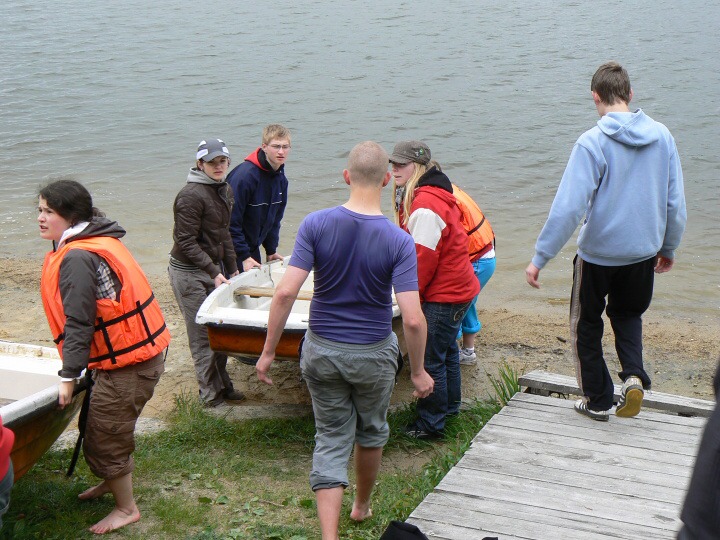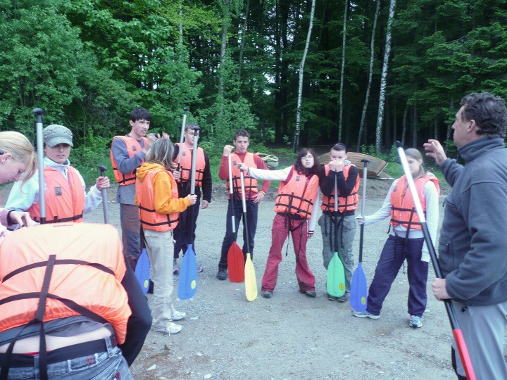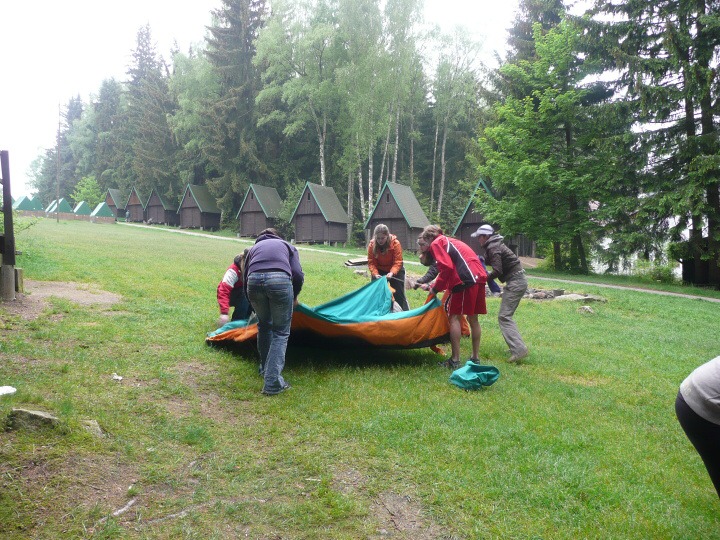 Za velmi chladného deštivého a větrného počasí jsme v pondělí 19. května 2008 ve 14:30 dorazili do základny Univerzity Karlovy, do Albeře k jezeru Osika. Všichni jsme byli plni nadšení a natěšení na nové sportovní zážitky. Nadšení opadlo, jakmile jsme zjistili, že takovéto počasí nám má vydržet celý kurz, noci máme strávit ve stanech a chodit v botách mírně řečeno "čvachtajících" (až na pár vyjímek, které byly na tuto nepřízeň počasí vybaveny nepromokavou obuví). Ještě před večeří nám náš pedagogický dozor, skládající se z paní Drobné, pana Bártla, pana Mahnela a tělocvicvikářů pana Zlatníčka a Formánka, připravil stezku v lese, kde na nás číhaly různé nástrahy v podobě úkolů, které jsme museli postupně splnit. Nejtěžší úkol byl dostat se zpátky do tábora pouze pomocí buzoly a fáborků ;-). Po skvělé večeři jsme se všichni sešli v klubovně na válečné poradě, co se zítra podnikne. Druhý den jsme nedělali skoro nic, protože celý den vydatně pršelo. Dostalo se nám pouze teoretické výuky topografie a první pomoci a menších výjezdů na kanoích. Ve středu byl den celkem záživnější, trénovali jsme pádlování na pramicích a kormidlování na kanoích, stříleli jsme ze vzduchovky a soutěžili v turnaji v ping pongu. Ve čtvrtek jsme absolvovali vyčerpávající pěší výlet po krásách jihočeska za stálého dozoru pedagogů a bouřky, jejich tempo bylo vražedné, naši vysvoboditelé byly pouze občasné bodované soutěže na konci dne vyhodnocené. Nakonec se nám počasí povedlo, bouřka nepřišla, pouze občas poprchávalo takže jsme si počasí docela pochvalovali. Poslední den dopoledne byli závody v jízdě na pramicích, stavění stanu, překonání lanové dráhy a porážení železných vojáčků pomocí vzduchovky. Po obědě byly tyto soutěže vyhodnocené a výherci odměněni. A potom už jenom hurá domů.
