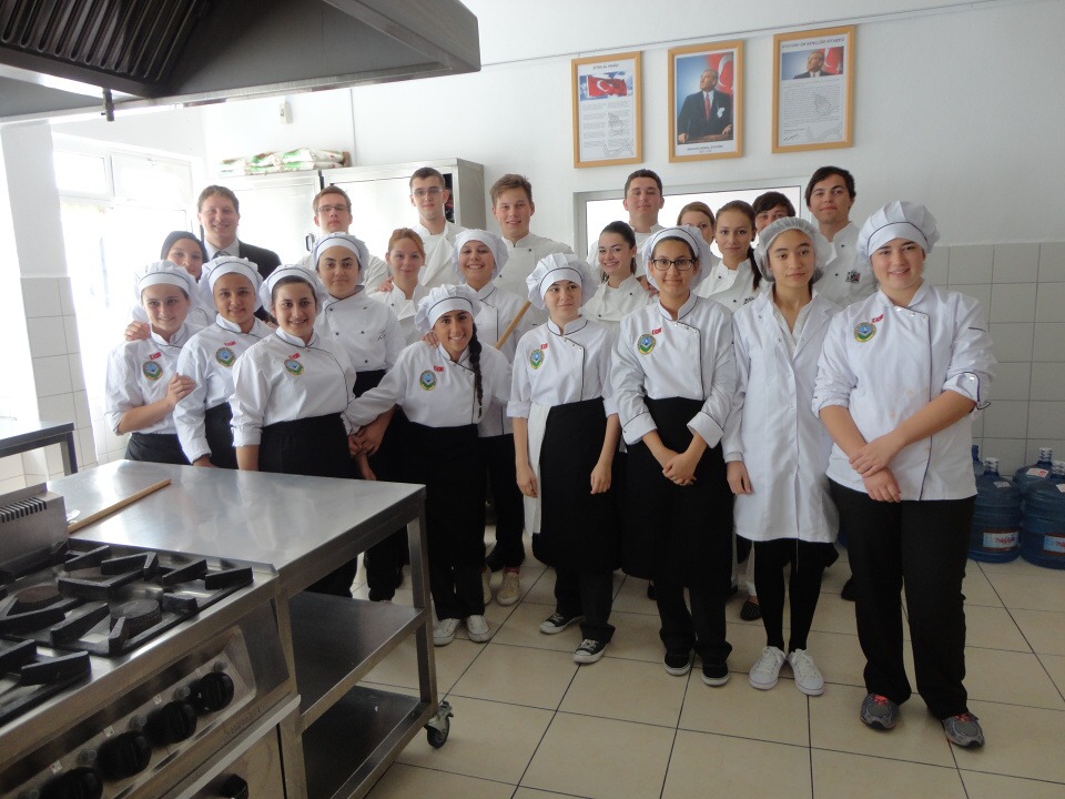 V dalších dnech jsme si zase vyzkoušeli vaření. Ve škole nás nevítali chlebem a solí, ale kostičkou lokumu. Místní studenti nám ve svých prezentacích představili svou školu, region i Turecko a taky nás čekala zábavná lekce turečtiny. Ve stejný den jsme si vyzkoušeli, jak se připravují dvě speciality turecké kuchyně, manti a gözleme. Copak gözleme, ty se na talíři neztratily, ale manti, které připomínaly mini tortelíny, se na dlaních našich urostlých studentů hledaly těžko (že, Zdendo :-)).