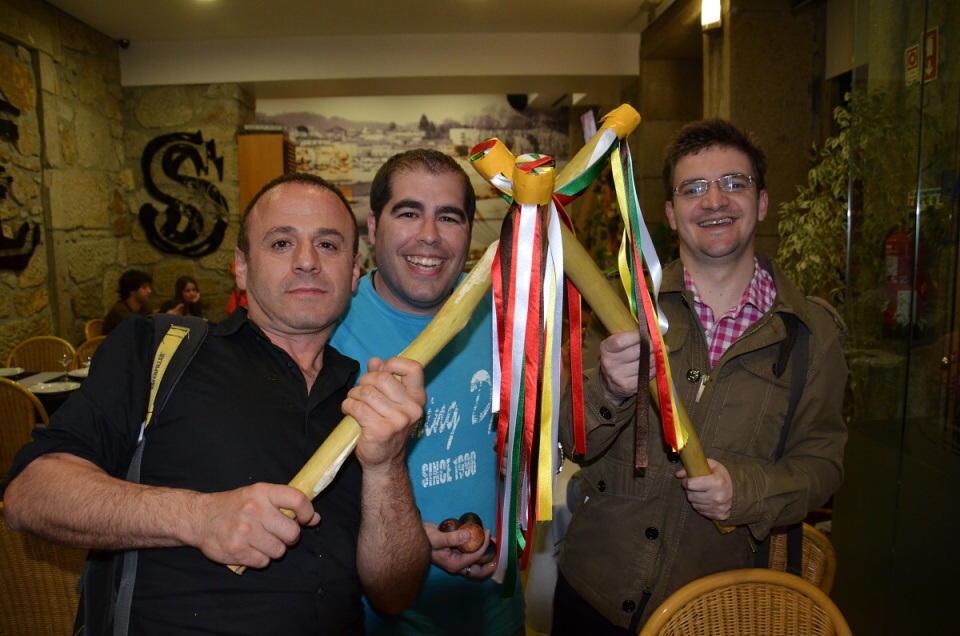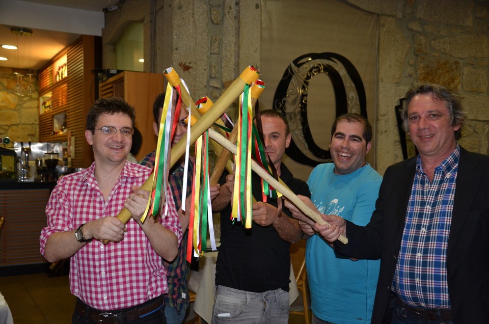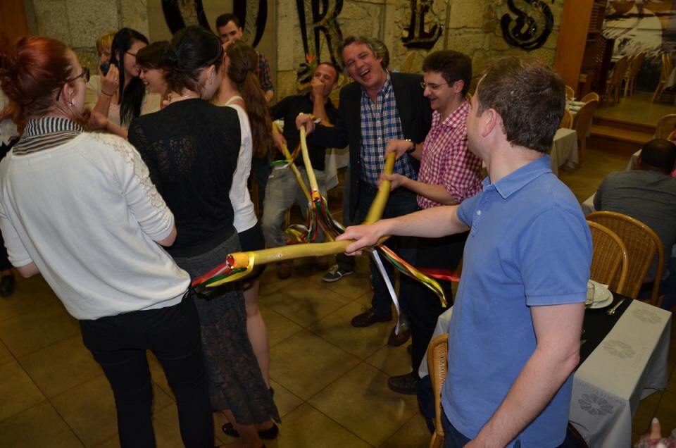 Naši přátelé nachystali na konec závěrečné večeře v nejstarším portugalském městě Ponte de Lima překvapení. Při návštěvě Poděbrad se jim české Velikonoce zalíbily natolik, že pro portugalskou schůzku nabarvili vajíčka a připravili si pomlázky, tedy pomlázky…takové kyje s pentlemi jste ještě neviděli. Naštěstí pomlázka byla jen symbolická, na rozdíl od loučení, které bylo skutečné a smutné. Nadějí nám může být nová výzva k evropským projektům Erasmus+ a jak známo, naděje umírá poslední!