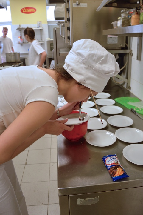 Druhý den (v sobotu) se naše práce obrátily a mě a moji skupinu čekalo vaření. Hostili jsme opět naše rodiče, paní učitelku Ivanu Širbičovou, pana zástupce Jana Kupra a k těmto hostům se ještě připojila paní učitelka Marcela Wagenknechtová a pan vychovatel Karel Novák. Blížila se 14 hodina a my pomalu dodělávali pokrmy. Vše se stihlo včas. Obsluha také vše hladce zvládla. Odešel poslední rodič a nás čekal úklid, který byl snad to nejhorší a nejtěžší na celém banketu, ale ani to nás nedostalo na kolena a společně jsme všechno dali do pořádku.
