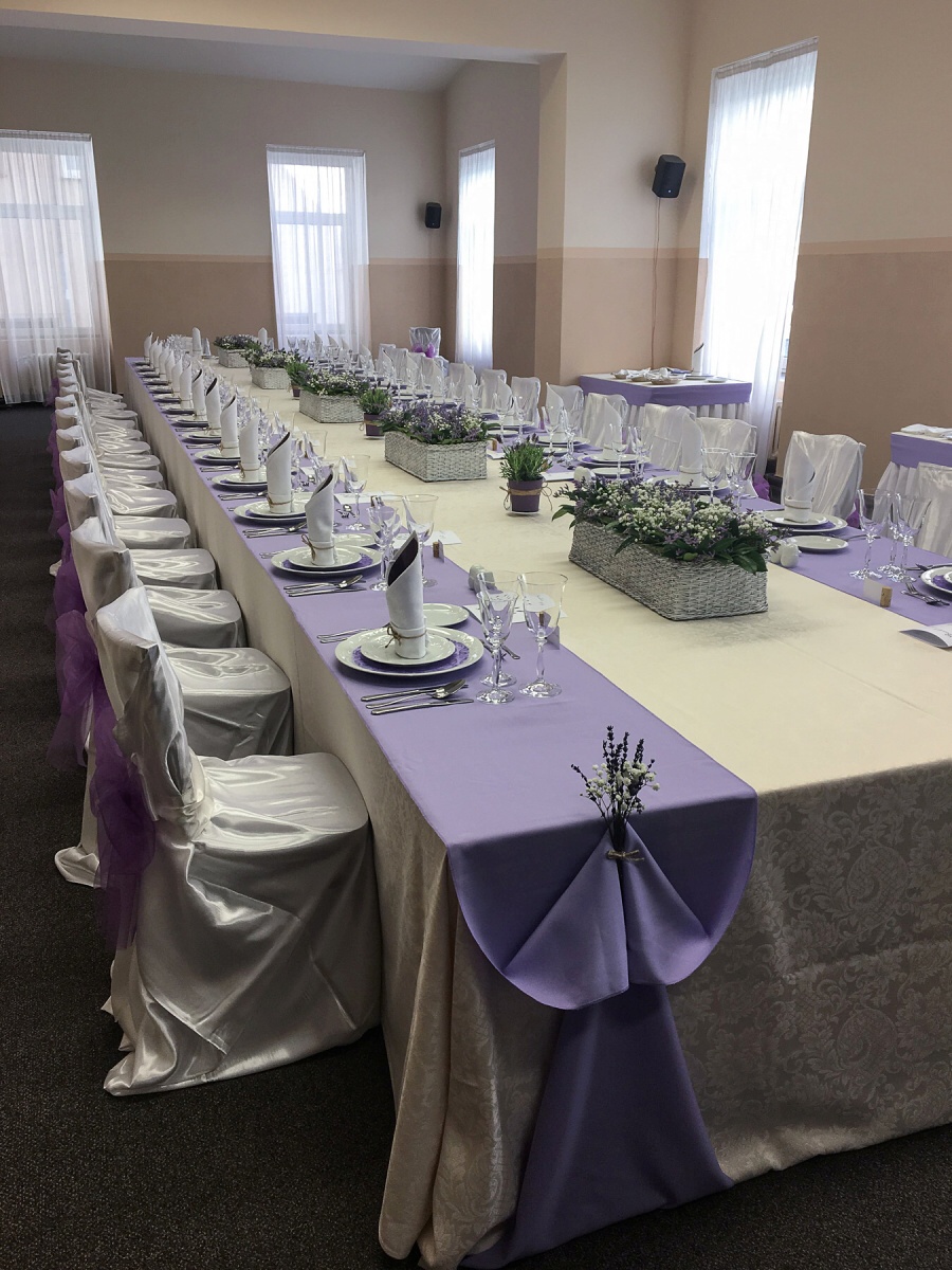 Na fungování obsluhy a přípravu slavnostní tabule dohlížel především pan učitel Lebeda. Po náročných a dlouhých přípravách jsme prostřeli tabuli v levandulových barvách.