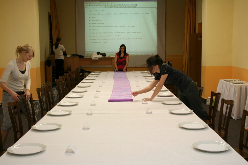 Banket jsme měli za úkol připravit od začátku až do konce – tedy od plánování a vymýšlení menu, výzdoby, tabule atd. přes sestavování libreta, kalkulaci surovin a inventáře, přípravné práce, vaření pokrmů a samotnou obsluhu až po úklid a konečné vyúčtování.