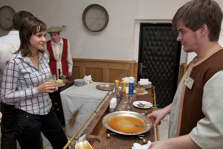 Dne 20. března ve středověkém stylu zahájila naše třída 2.A každoroční slavnostní raut pořádaný k ukončení praktické výuky. Nejdříve vše nasvědčovalo tomu, že raut se bude odehrávat kdesi v asijských zemích, ale opak byl pravdou. Zůstali jsme u nás v Čechách, jen jsme se přesunuli o pár let dříve, kdy ještě naši zemi obývalo urozené šlechtictvo a lide žijící v podzámčí. To znamená, že jsme náš raut pojali „hezky staročesky“.