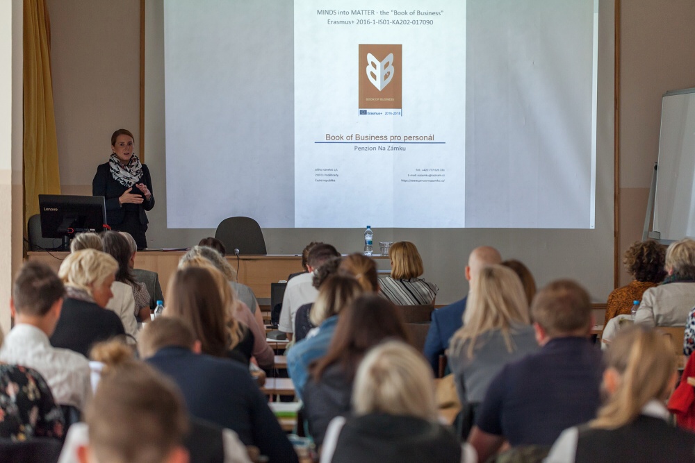 Ve dnech 15. až 17. května 2018 bylo na naší škole rušno. Popravdě i ve dnech předcházejících a následujících, protože naše škola přece nikdy nespí:-) V probíhajícím projektu Erasmus+ KA2 Minds into Matters jsme dostali pro tento čas roli organizátora tzv. Multiplying Event, konference, jejímž cílem bylo seznámit odbornou i laickou veřejnost s cílem projektu. Odborná veřejnost nakonec početně převážila, kromě vedení místních hotelů a restaurací, představitelů profesně zaměřených sdružení (Asociace vzdělávacích zařízení pro rozvoj venkovského prostoru, Asociace malých a středních podniků a živnostníků ČR) se konference zúčastnili i učitelé a studenti naší školy. Přivítali jsme koordinátorky z Islandu a partnery z Litvy, Estonska, Polska a Španělska. Dostavili se i zástupci z Vysoké školy ekonomické v Praze a Vysoké školy polytechnické v Jihlavě. Příspěvky byly více než zajímavé, hosté z francouzské partnerské školy v Peyregoux zvlášť vysoce ocenili chystaný výstup z našeho projektu, tzv. Book of Business, jehož pracovní verzi za naši školu představily projektové mentorky Zuzana Hummelová a Eva Svobodová, za Španělsko Mariví Gracia. BoB zaujal mnohé z účastníků, kteří již projevili zájem o účast v dalším pokračování projektu. Ti, co vydrželi konferenční maraton až do konce, byli odměněni skvělým obědem s bezchybným servisem, jak jinak než v podání studentů a odborných učitelů naší školy. Odpoledne jsme navštívili jako příklady dobré praxe rodinné firmy, jmenovitě Muzeum Jendy Rajmana v Rožďalovicích, biofarmu v Košíku a hospůdku v Tuchomi. Všem, kteří s organizací pomáhali, patří obrovský dík. Konference opět zviditelnila naši školu v očích odborné i laické veřejnosti a stala se důstojným příspěvkem k blížícím se oslavám padesátin naší duchem stále mladé a energií sršící školy!